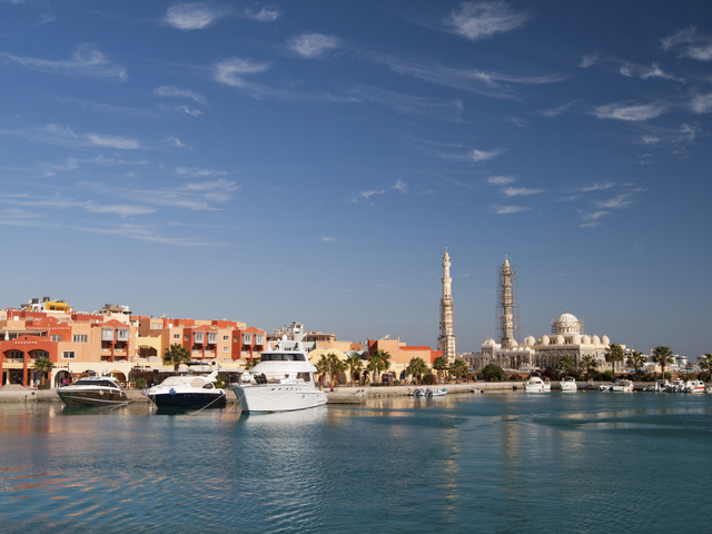 Hurghada is a city in the Red Sea Governorate of Egypt. It is a main tourist center and second largest city (after Suez) in Egypt located on the Red Sea coast. Although a town in its own right Hurgada’s current major industry is foreign and domestic tourism, owing to its dramatic landscape, year-round dry and temperate climate and long stretches of natural beaches. Its waters are clear and calm for most of the year and have become popular for various watersports, particularly recreational scuba diving and snorkelling. Owing to the High temperatures and dry climate many of the hotels in the area now offer water parks the such as the Jungle Aqua Park, who boasts being the biggest.